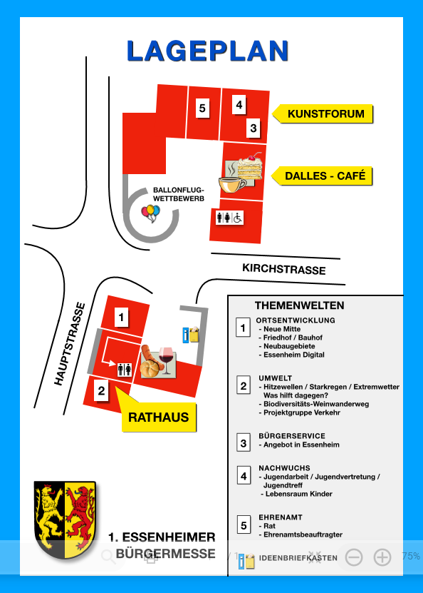 Rund um den Dalles erwarten Sie fünf Themenwelten: Ortsentwicklung, Umwelt, Bürgerservice, Nachwuchs und Ehrenamt. Dort können Sie mit den jeweiligen Ansprechpartnerinnen und Ansprechpartnern ins Gespräch kommen, Ihre Fragen stellen und eigene Ideen einbringen.
